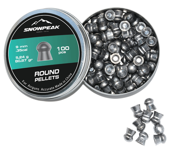 ROUND PELLET 9MM WEIGHT:5.24G/80.87GR 100PCS/TIN 50TIN/CTN