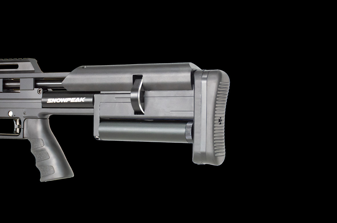 Massive 810cc air capacity and regulator chamber of 150cc, providing sufficient power for heavy projectiles.